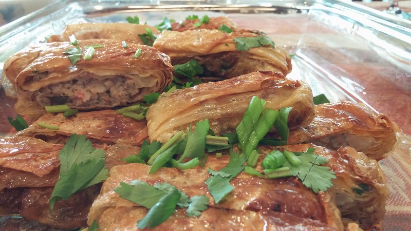 Also, if you are at the Asian market and you’re looking for fresh bean curd sheets, try looking in the frozen section. I looked in the refrigerated tofu section because I thought it would be with their tofu brethren but I was wrong. I was disappointed and ALMOST settled for the dried stuff that would have been challenging to work with. I roamed around and found the “fresh” sheets in the FROZEN section! So…if you’re about to give up and settle for the dry bean curd sheets, take a quick scan of the frozen section (bottom racks) to see if the frozen fresh sheets are there.