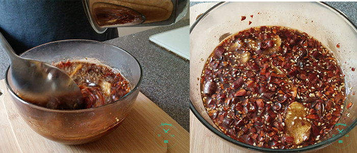 The beauty of cooking Asian food is the layers of flavors attributed to by all the different ingredients. On the other hand the tedious park of cooking Asian food is finding all said ingredients. Luckily we live near and Asian market where were able to find everything we needed. Think of it as a scavenger hunt…in a different language! Tips about the ingredients: