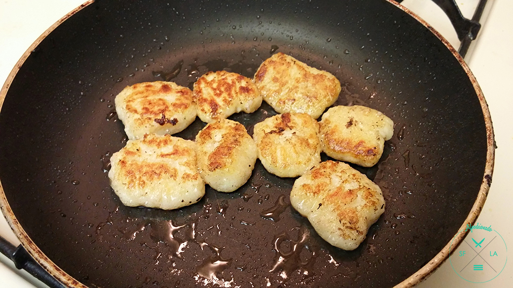 - Let the gnocchi dry a little so you don’t hurt yourself searing/frying them.