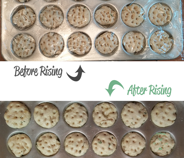 I used the same recipe and same methods as I did with the original foccacia bread recipe, but in the cupcake or mini cupcake tin: